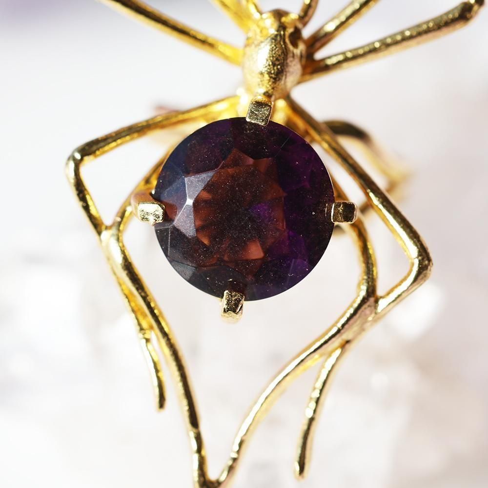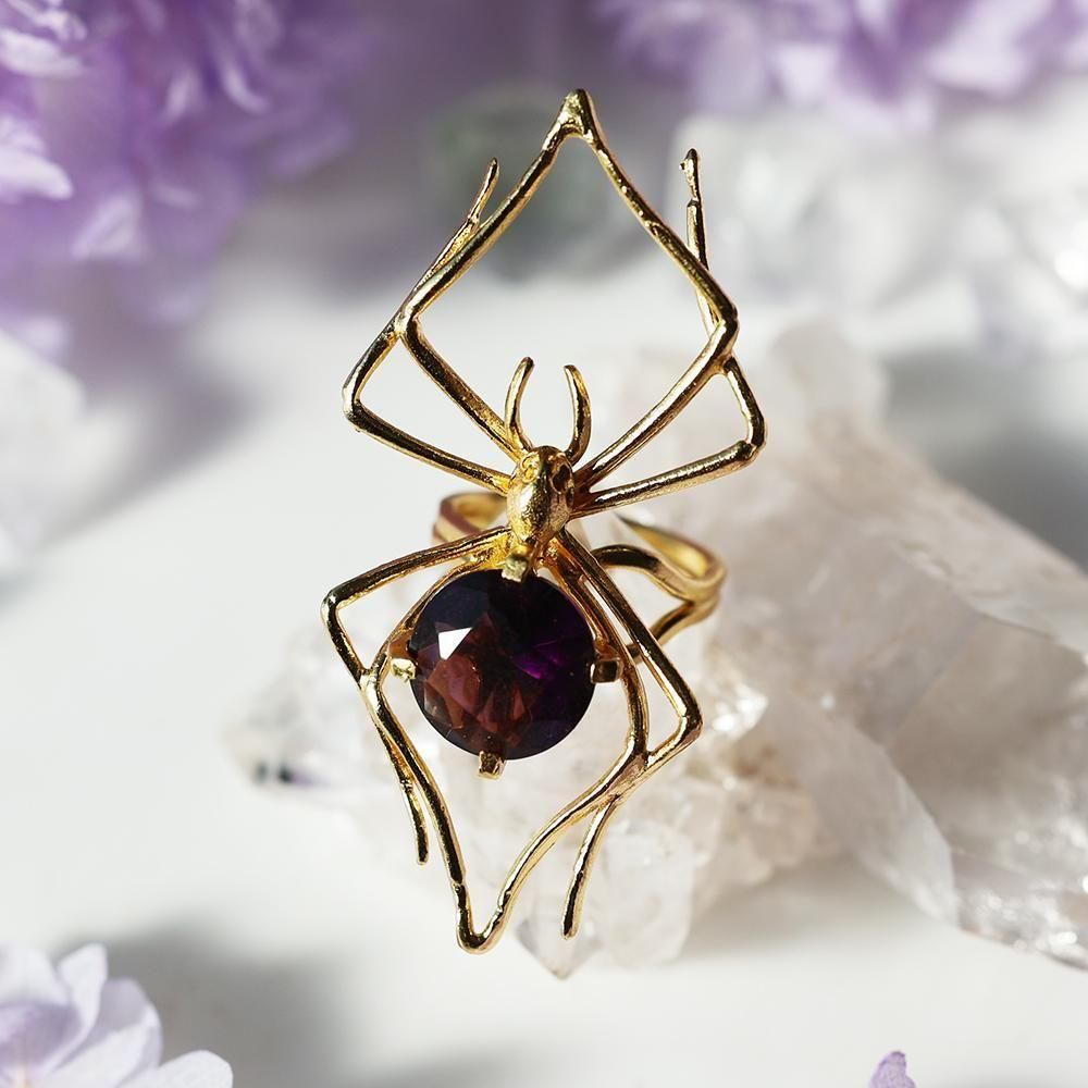 大ぶりな蜘蛛のデザインが素敵な、金色の指輪です。