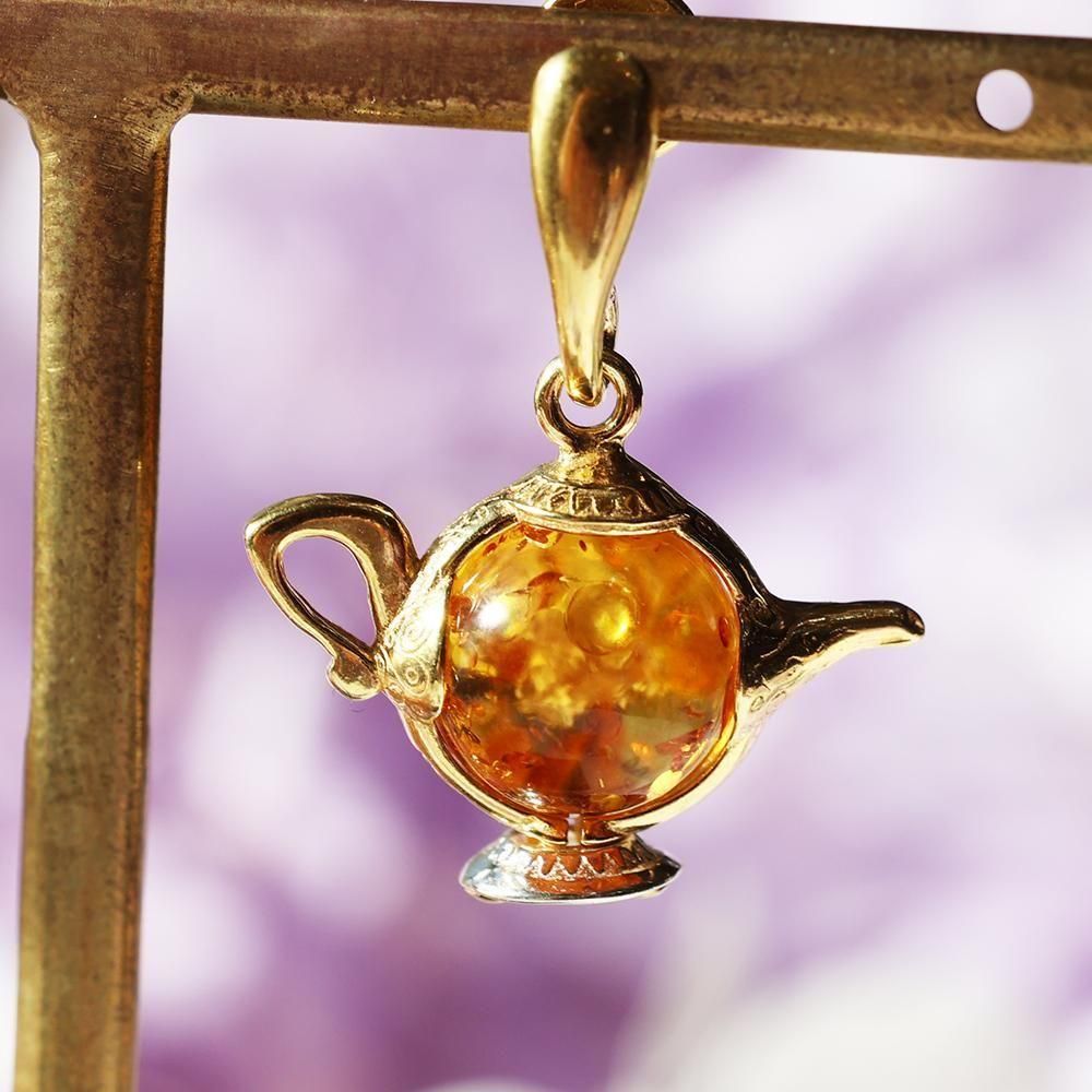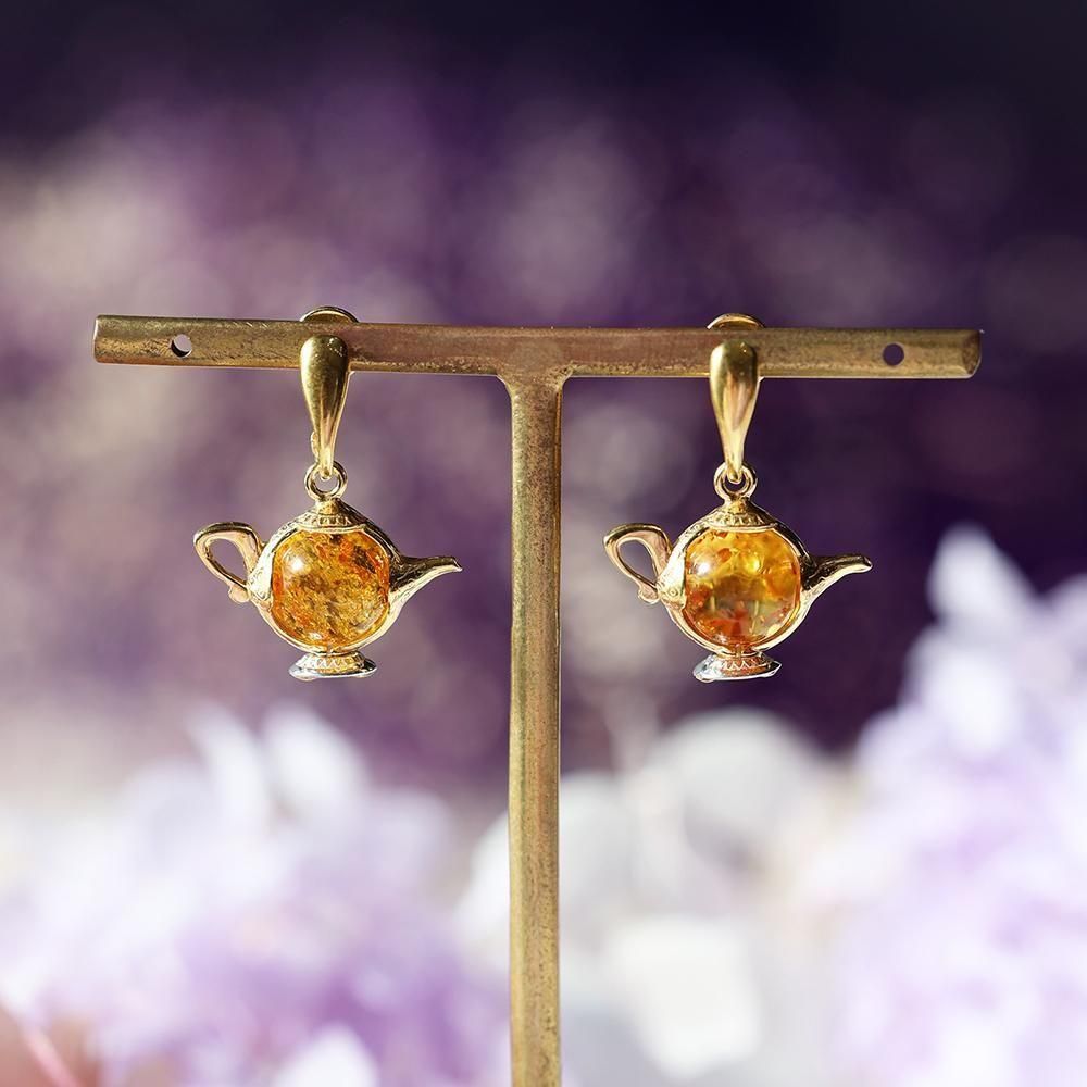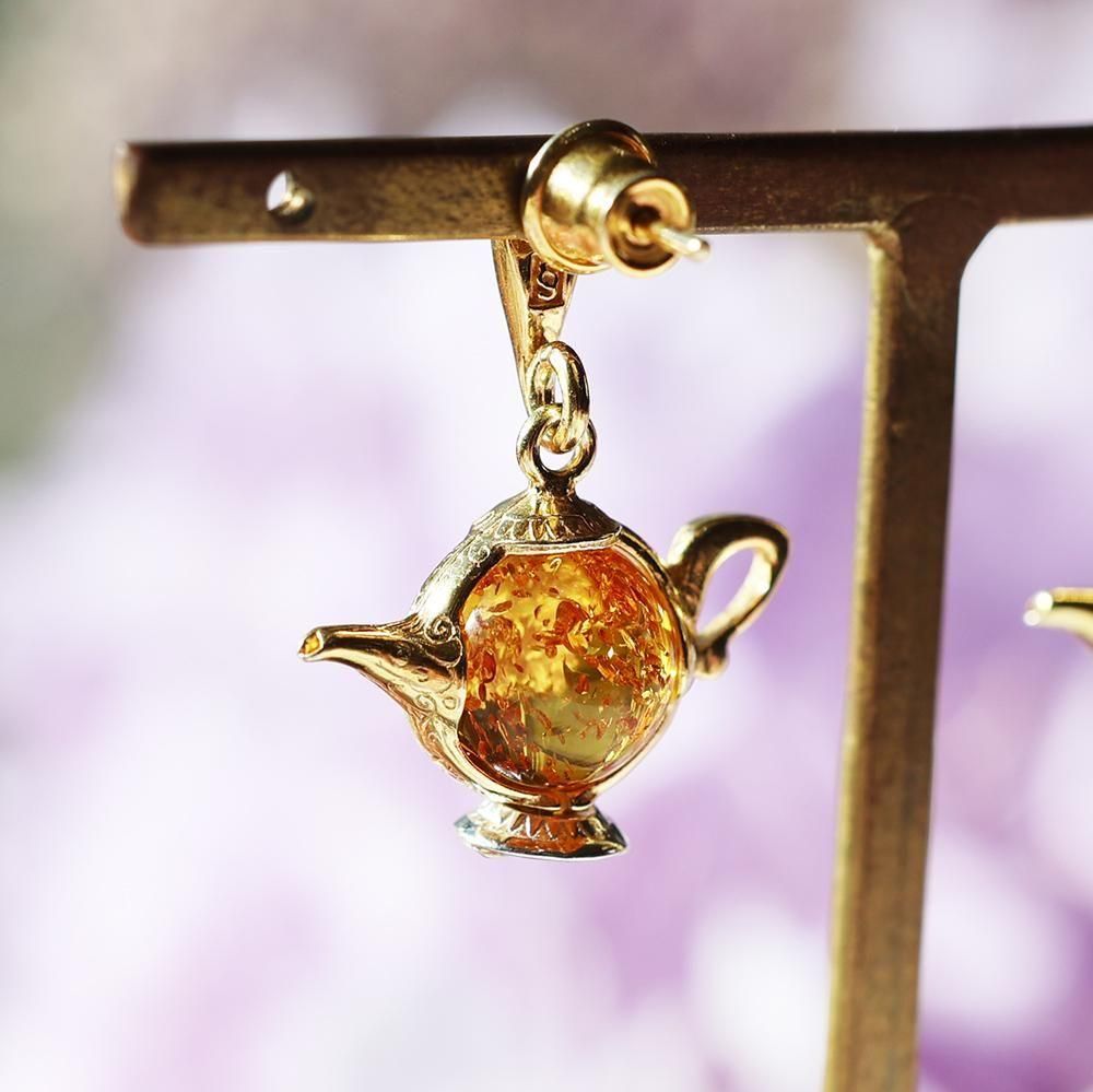 琥珀のティーポットピアス