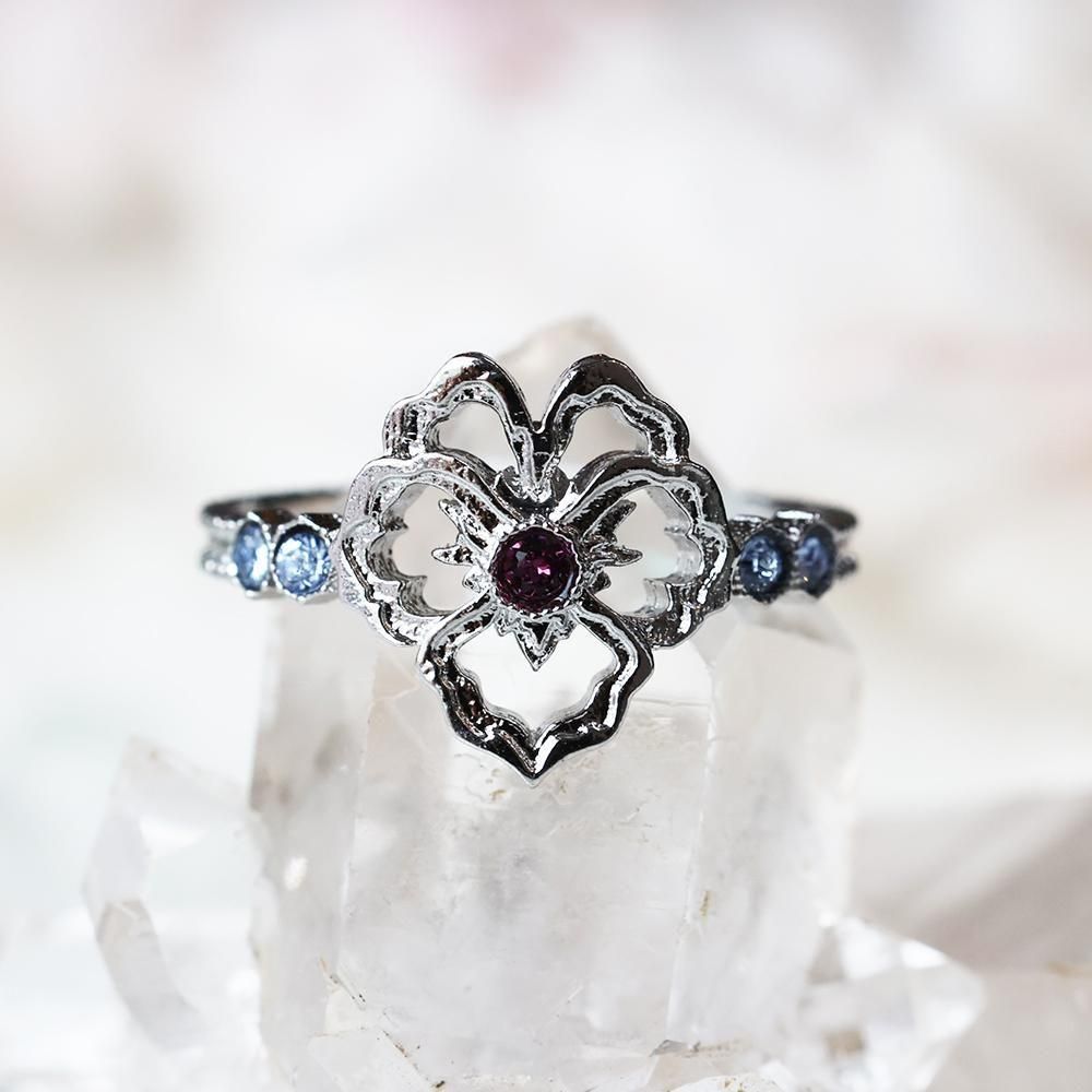 ビオラの花のデザインが素敵な指輪です。