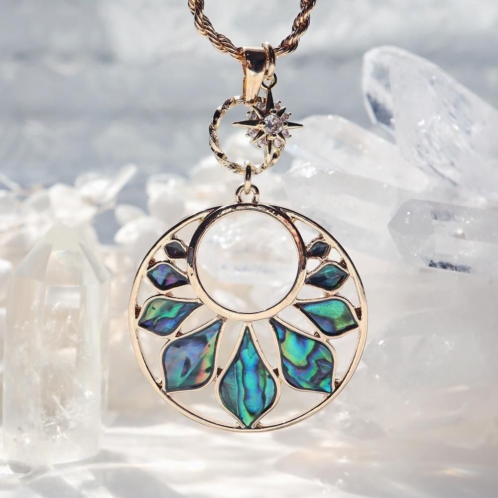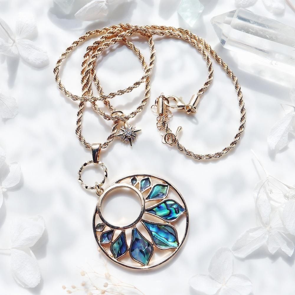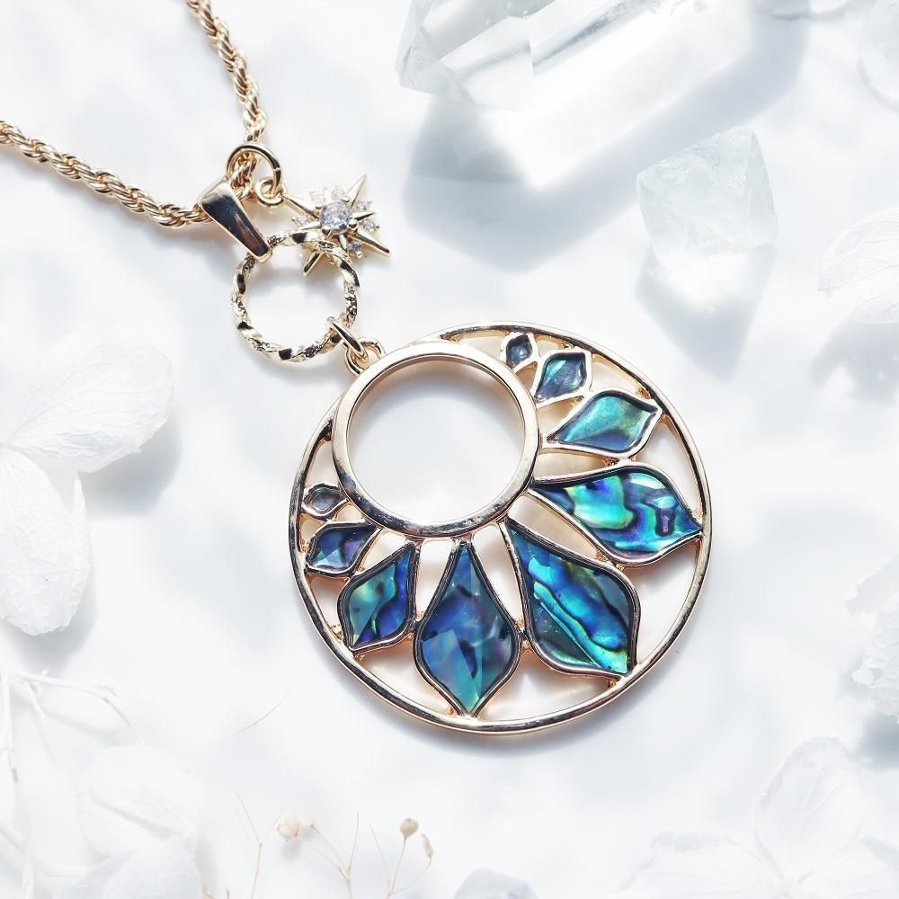 大ぶりなアヴァロンシェルチャームが揺れるネックレスです。