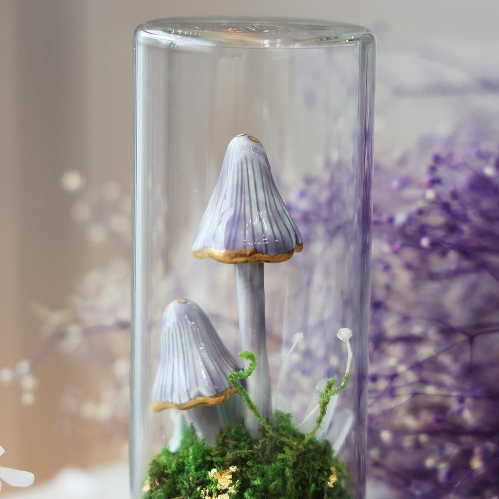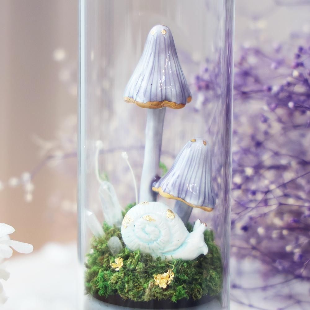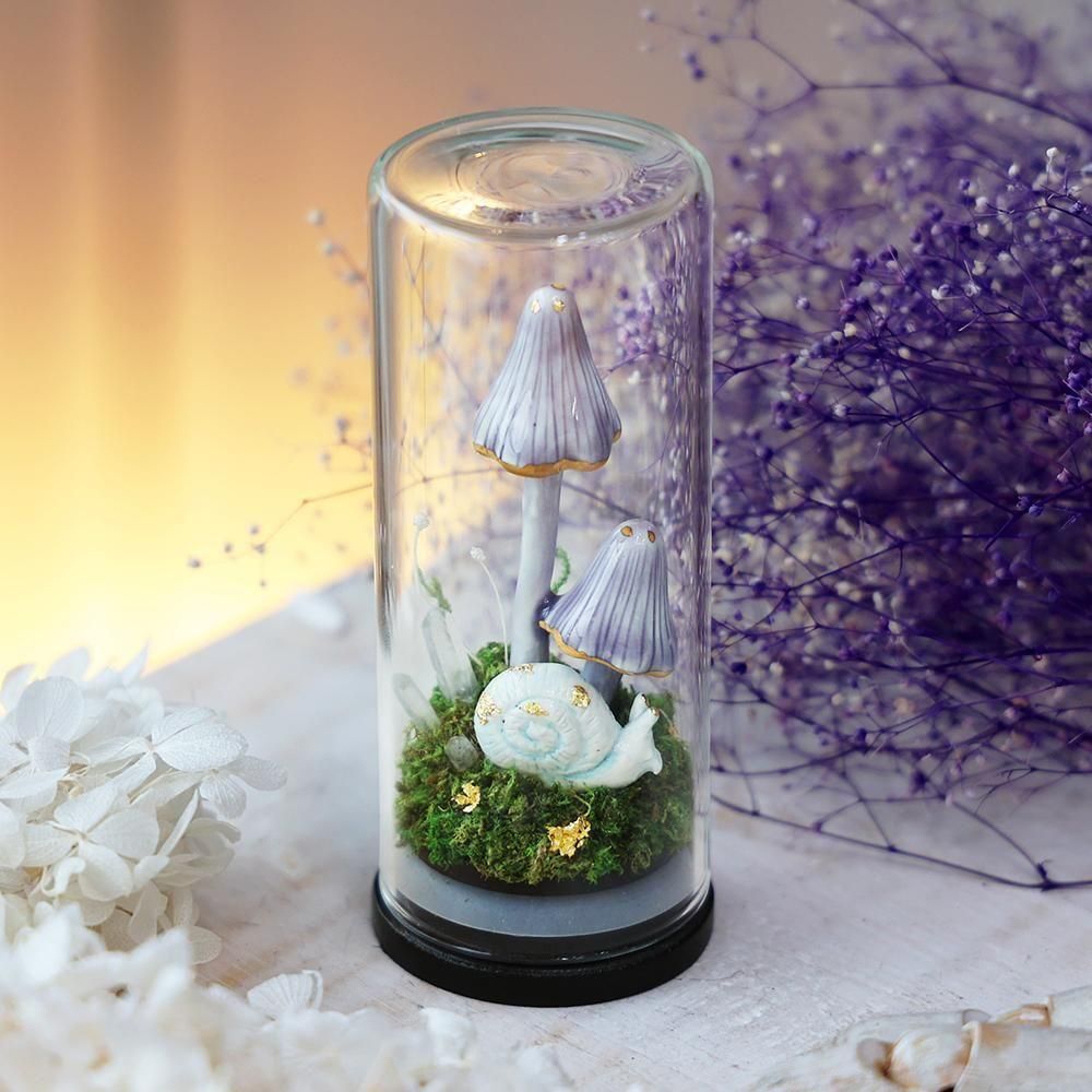 テラリウム「キノコとカタツムリの水晶テラリウム」