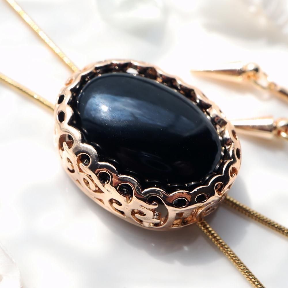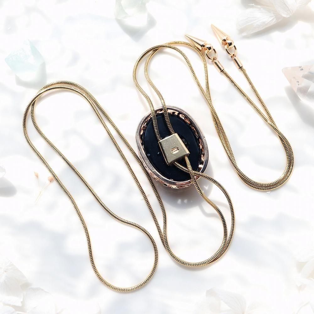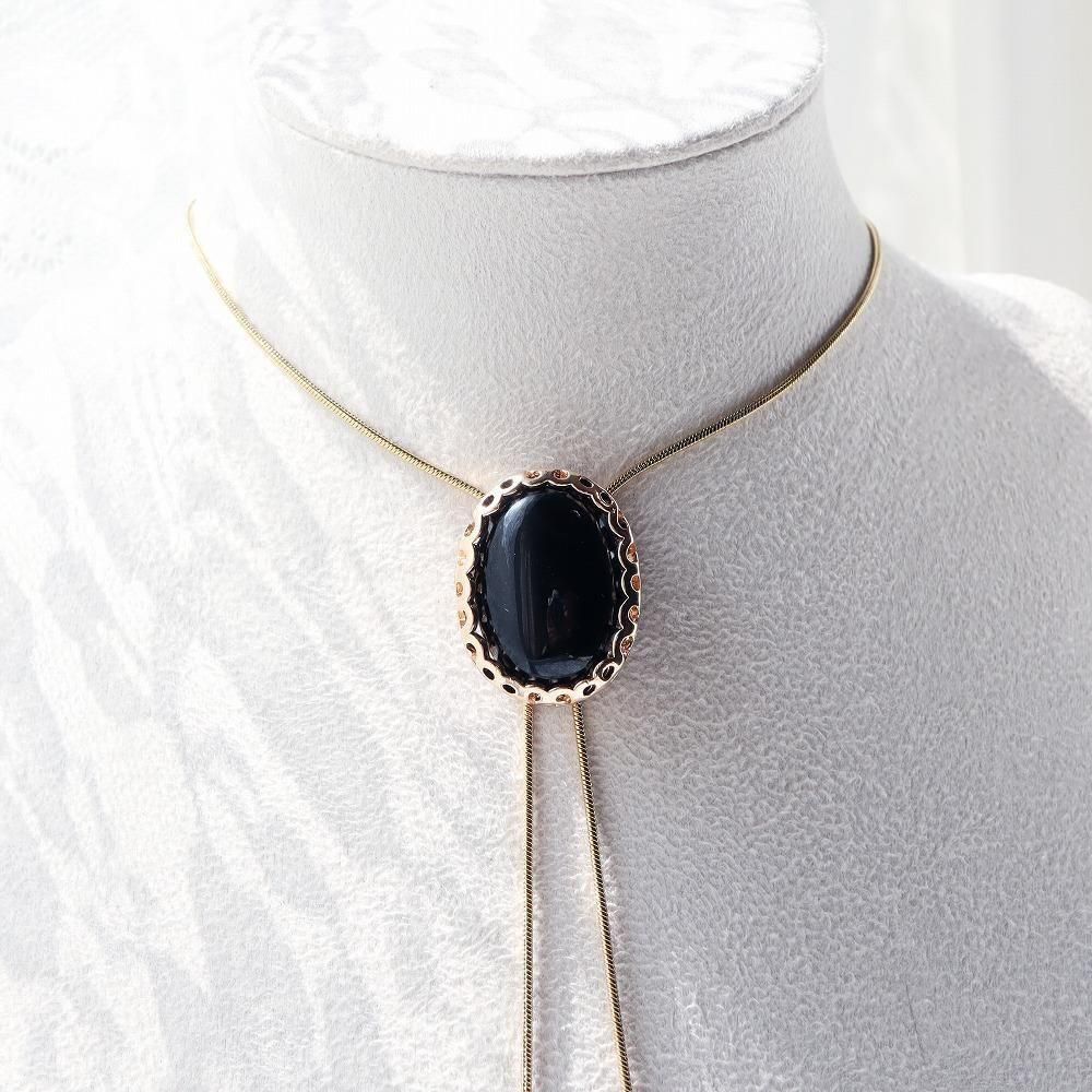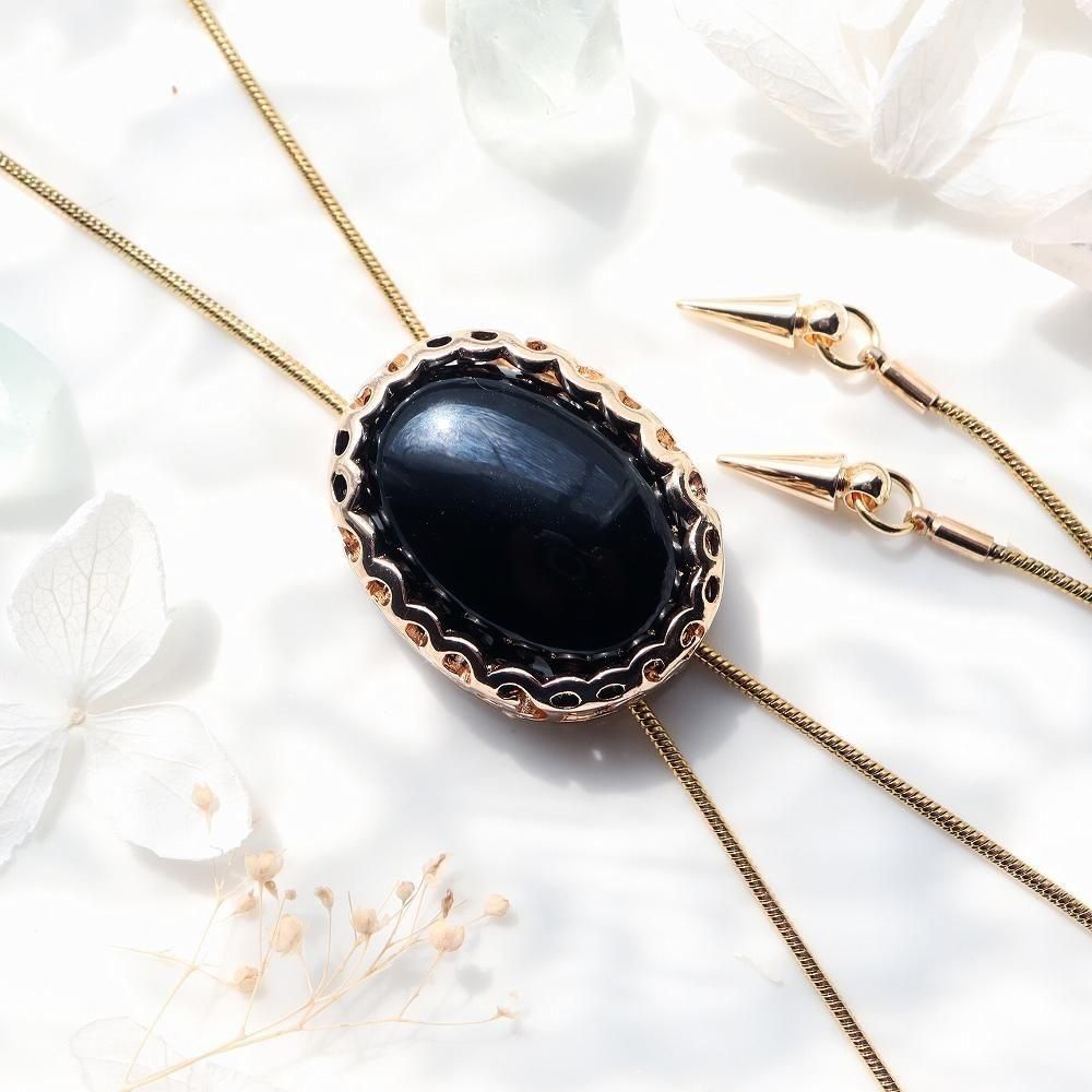オブシディアン(黒曜石)のカボションを使用したチェーンループタイです。
