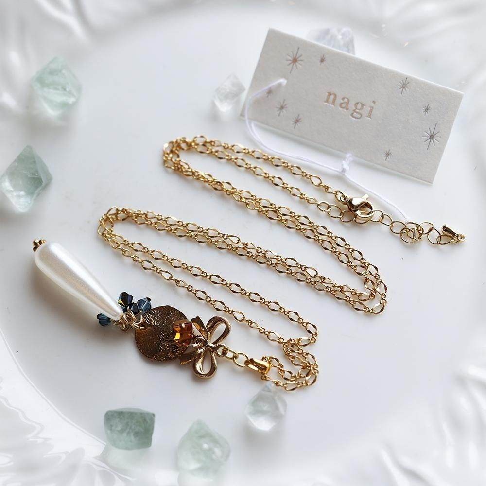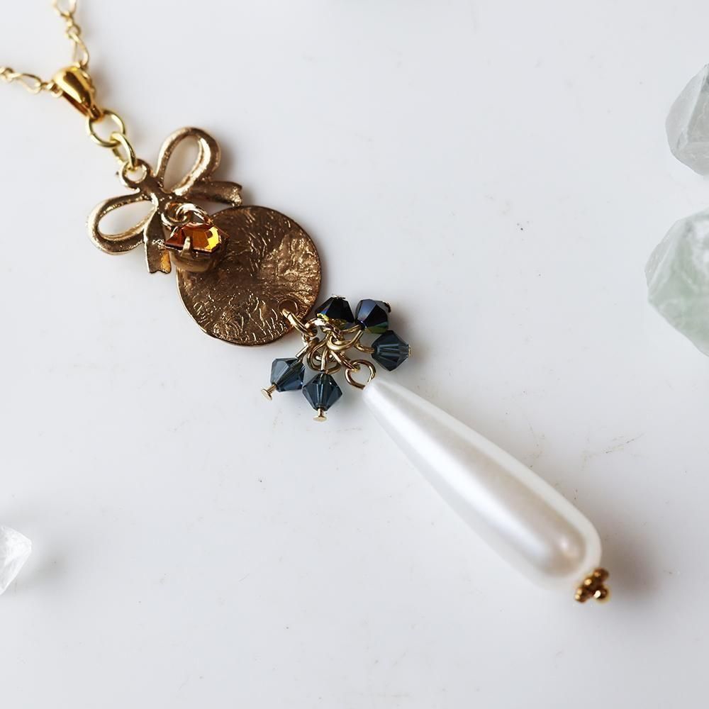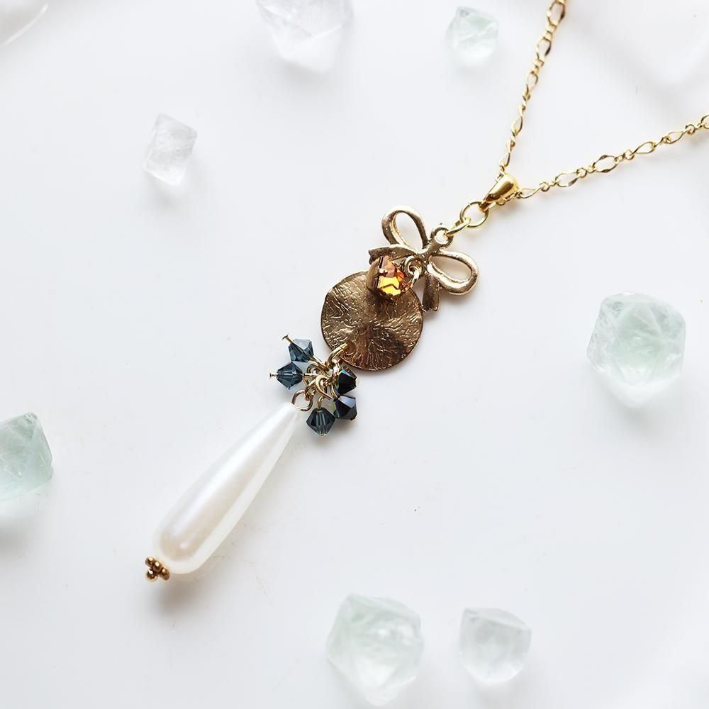 スワロフスキー硝子とアクリルパールが可愛いネックレスです。