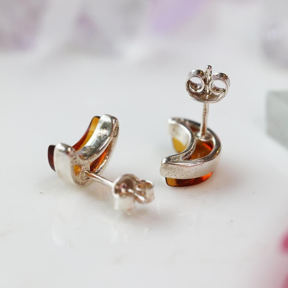 ポーランド製の小さなアンバー(琥珀)のピアスです。