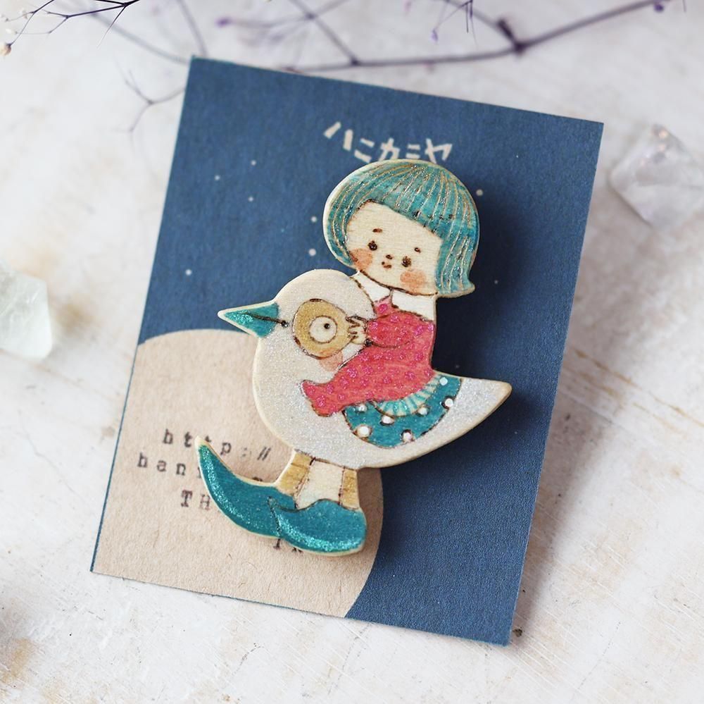 小鳥と木の実のブローチ(ラピスラズリ・オパール・カーネリアン)