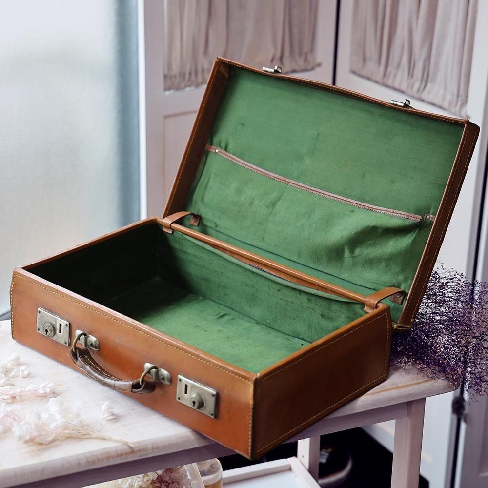 やや小さめのサイズが可愛い、古い革製のトランクです。