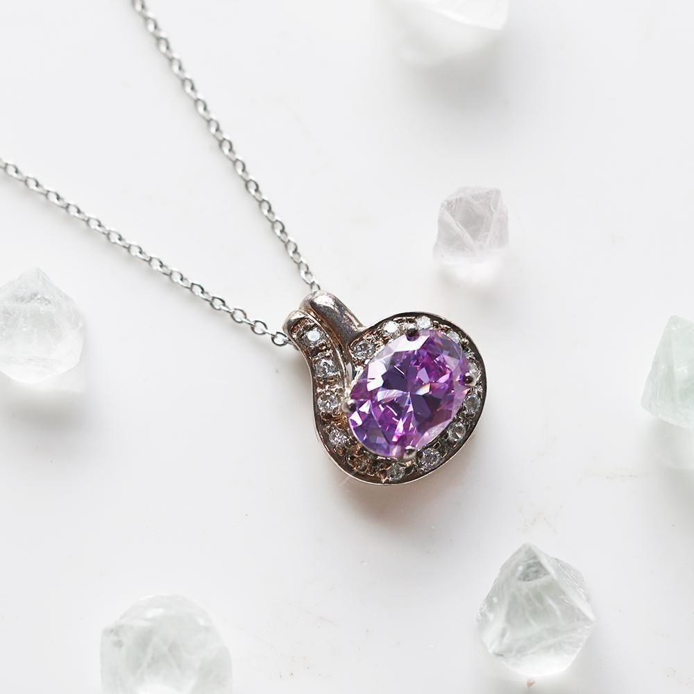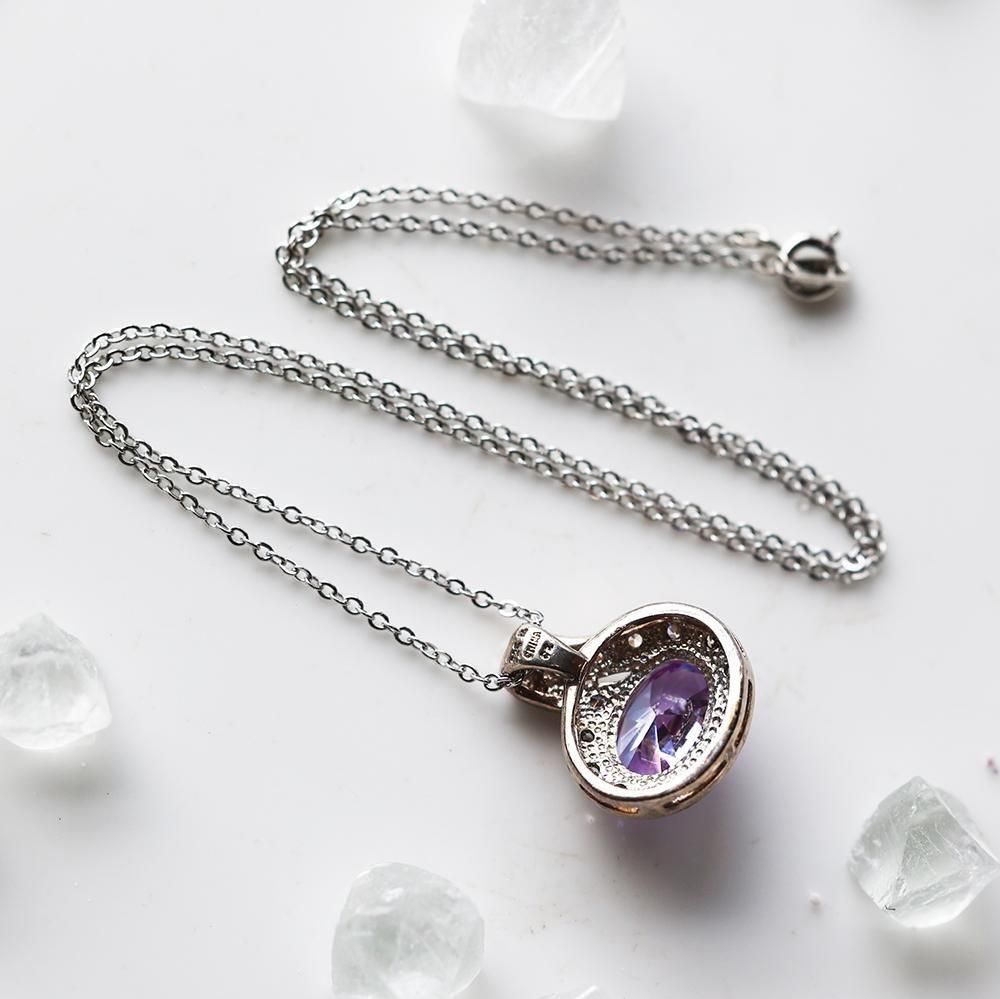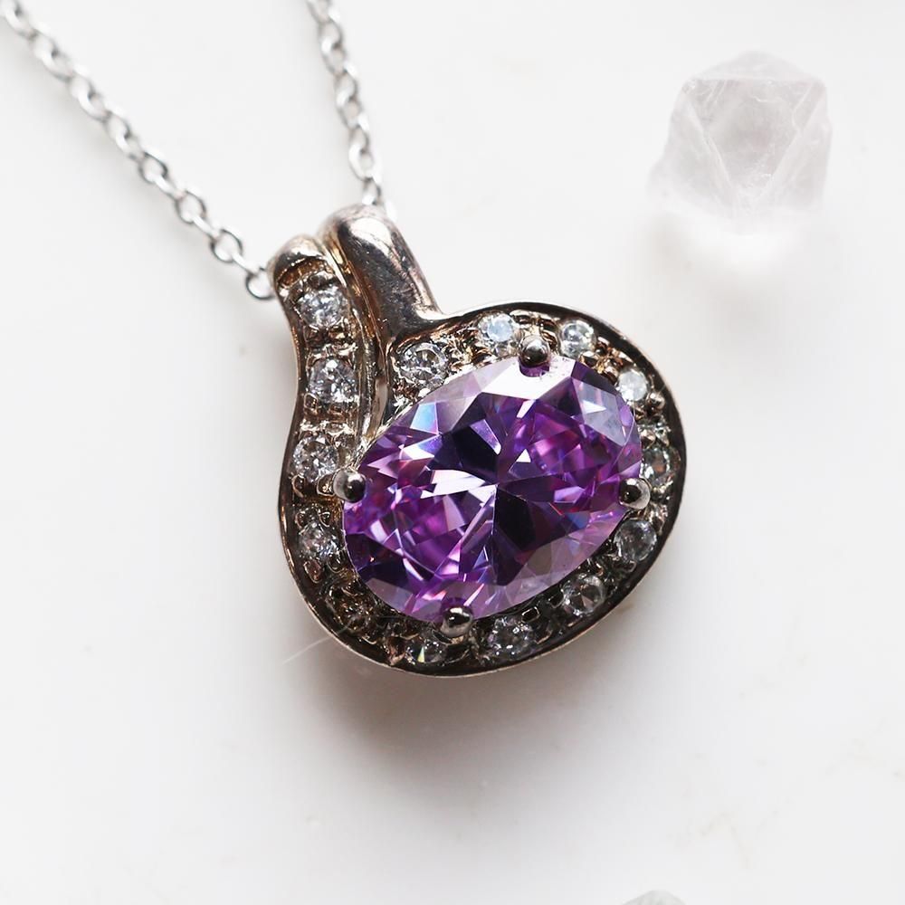 綺麗にカットされたアメジストが輝く、古いネックレスです。