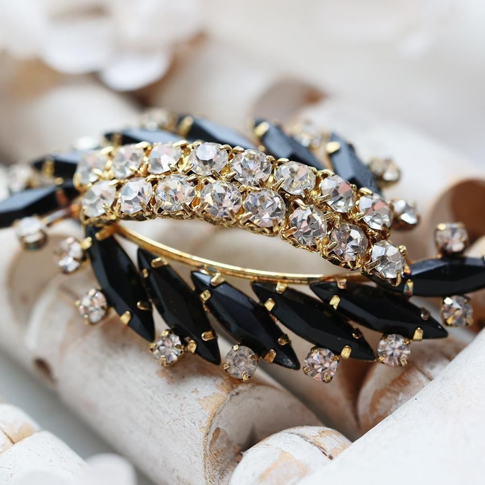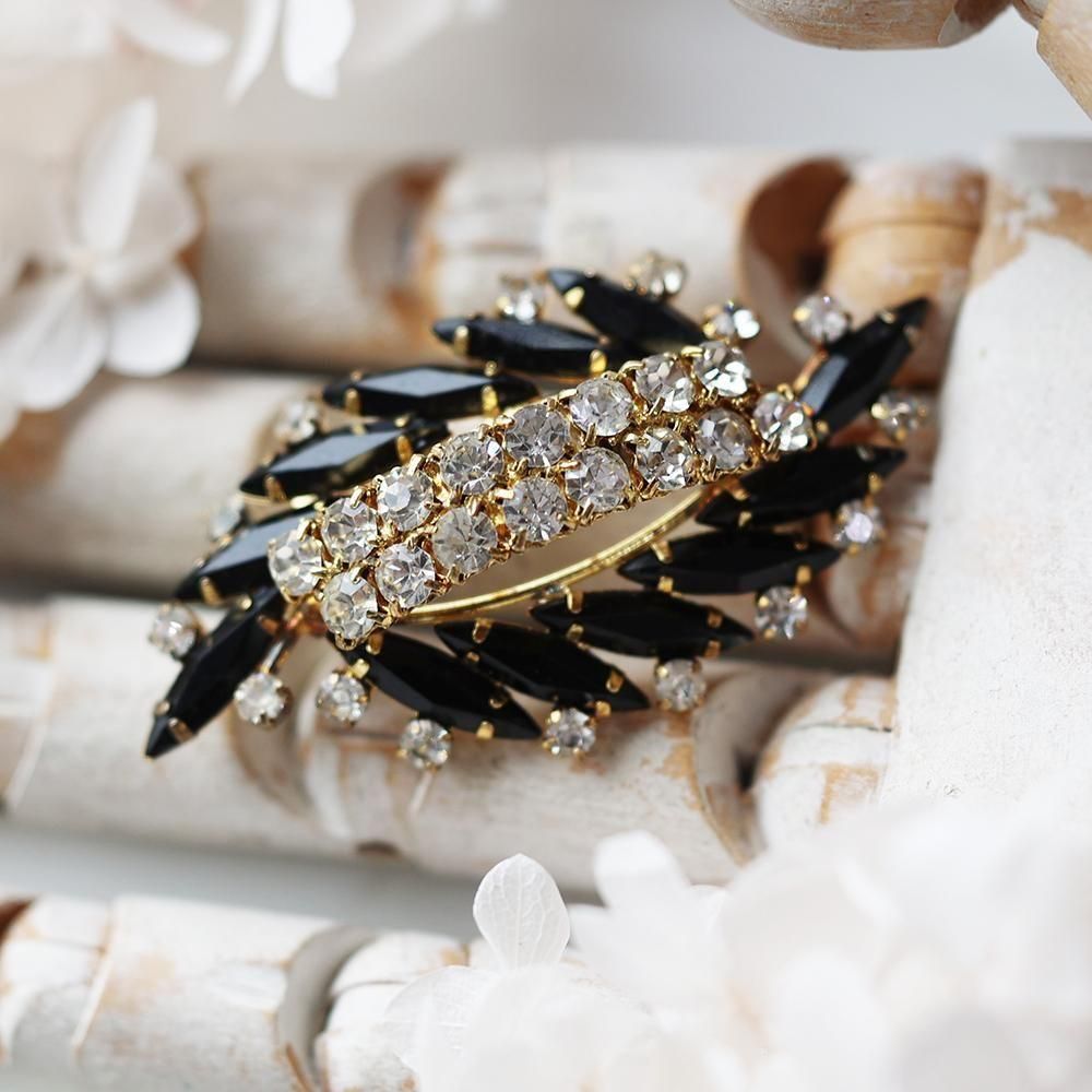 落ち着いた黒色の硝子ストーンが散りばめられたブローチです。