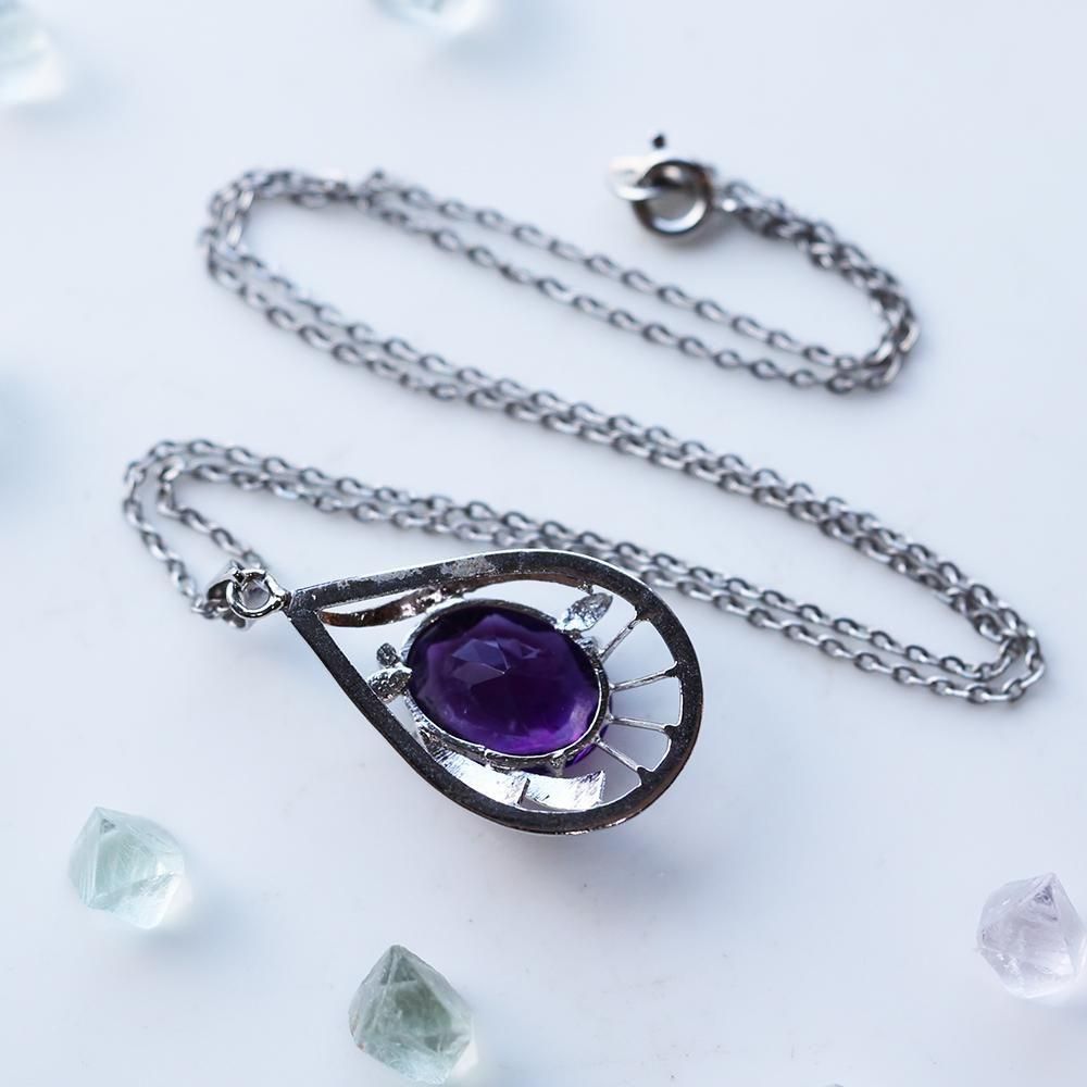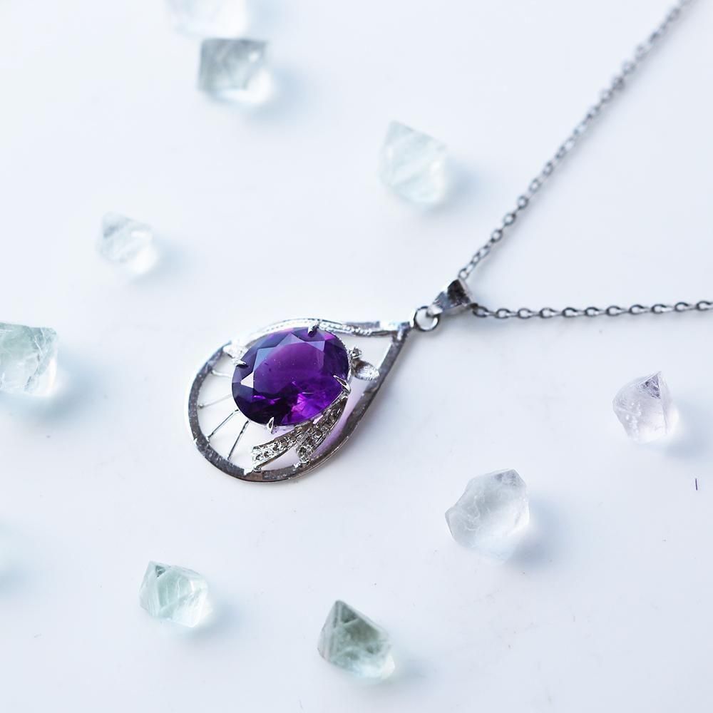 紫硝子のネックレス