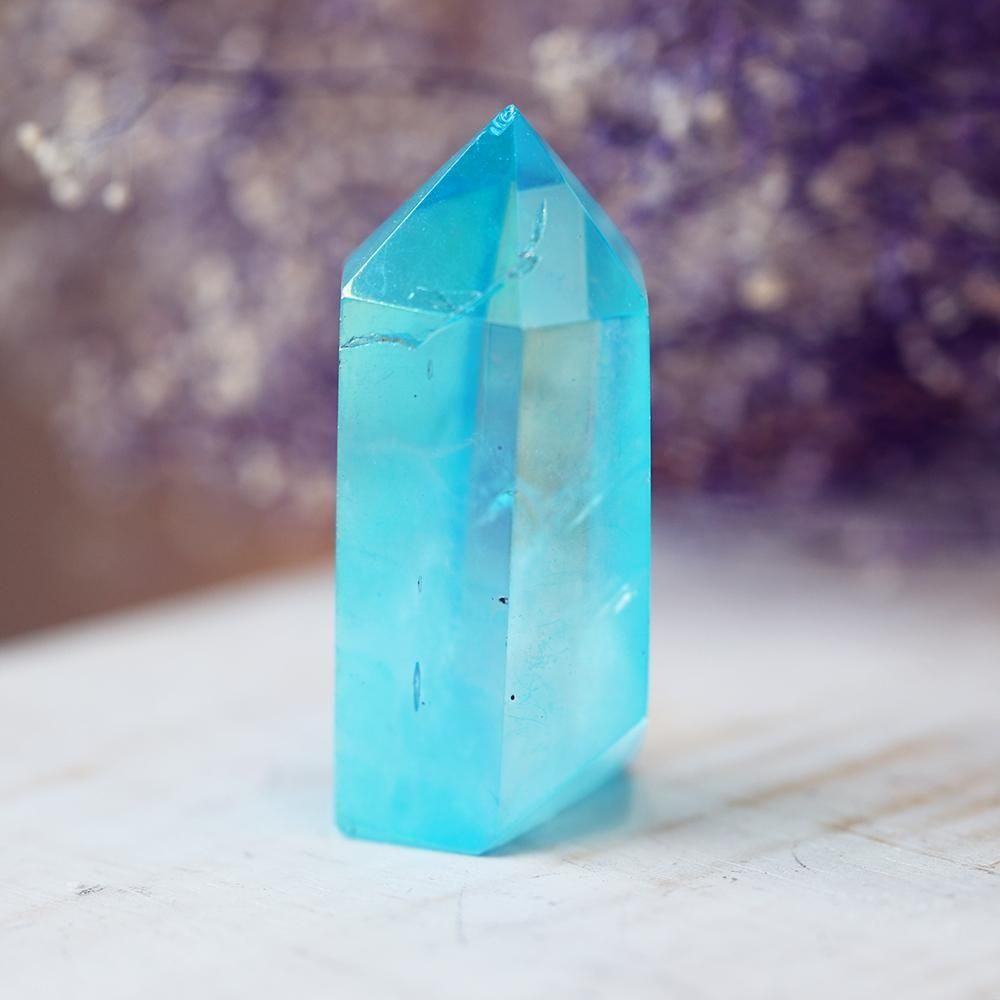 Aura crystals are created by artificially bonding precious metals such as gold, platinum, or titanium onto high-quality clear quartz in a vacuum at high temperatures.