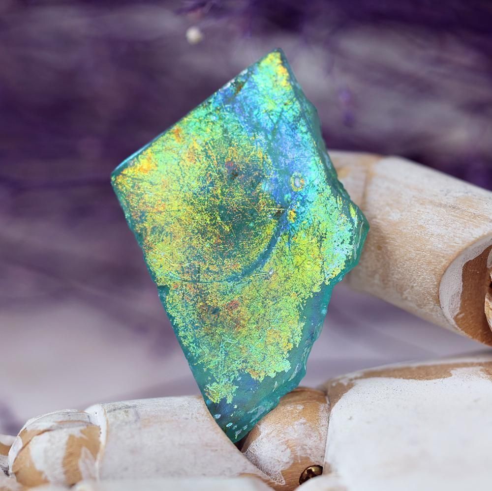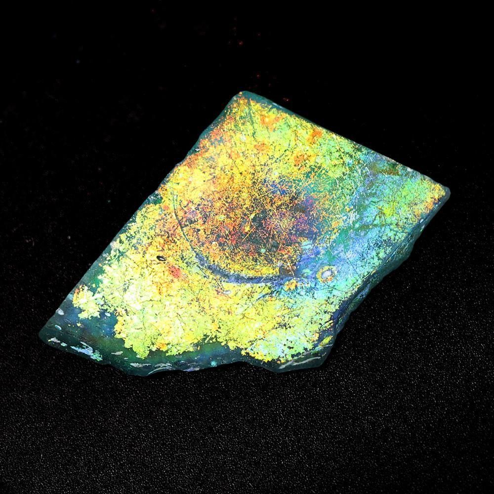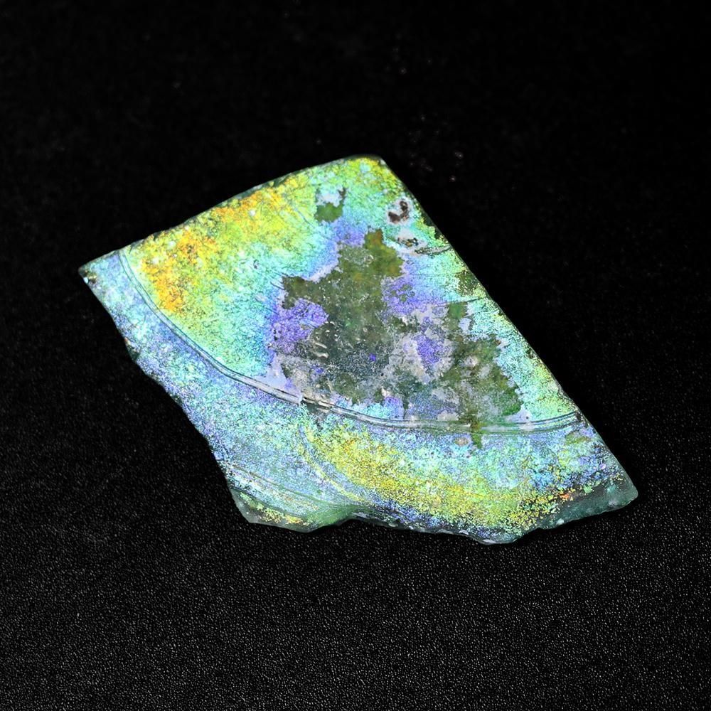 黄色〜赤色の虹が綺麗な、ローマングラスの欠片です。