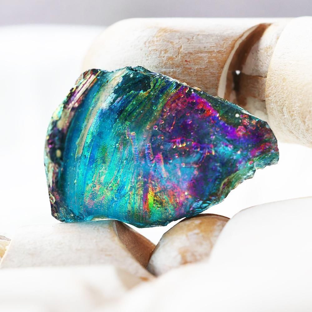 綺麗な紫〜緑の虹色のローマングラスの欠片です。