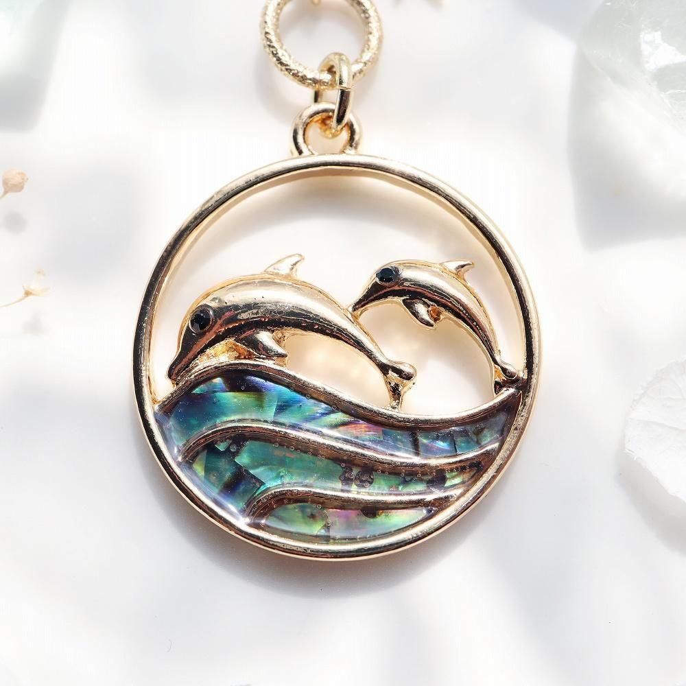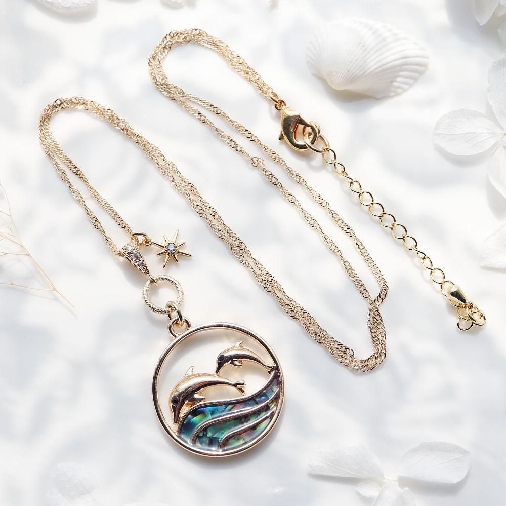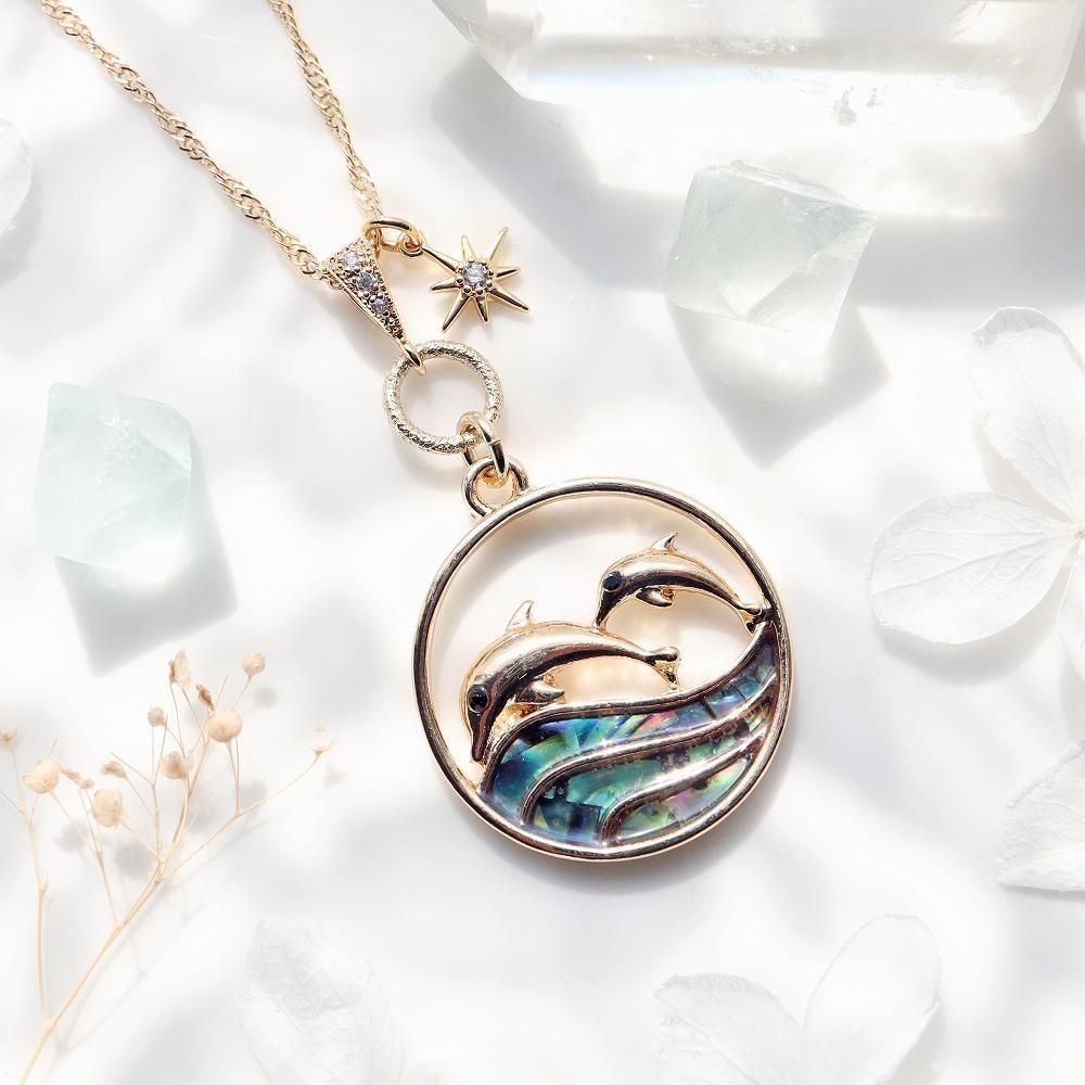 イルカのアヴァロンシェルのチャームが揺れるネックレスです。