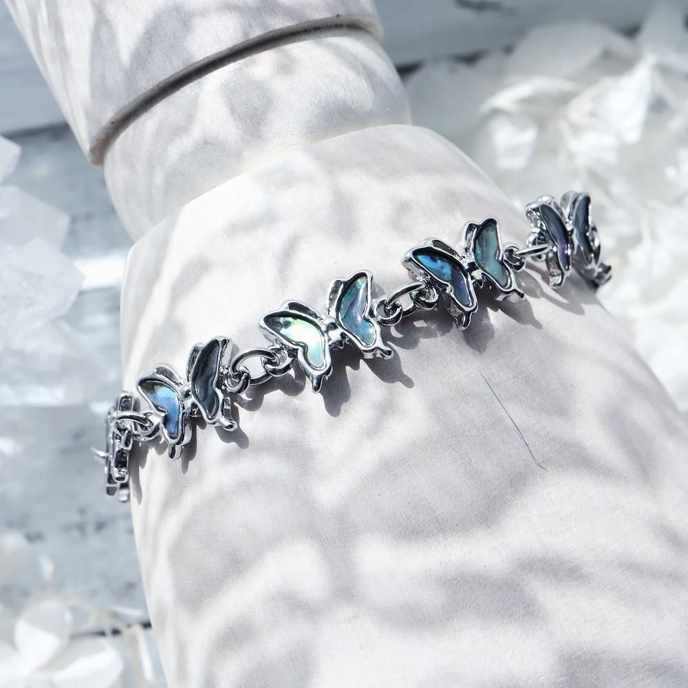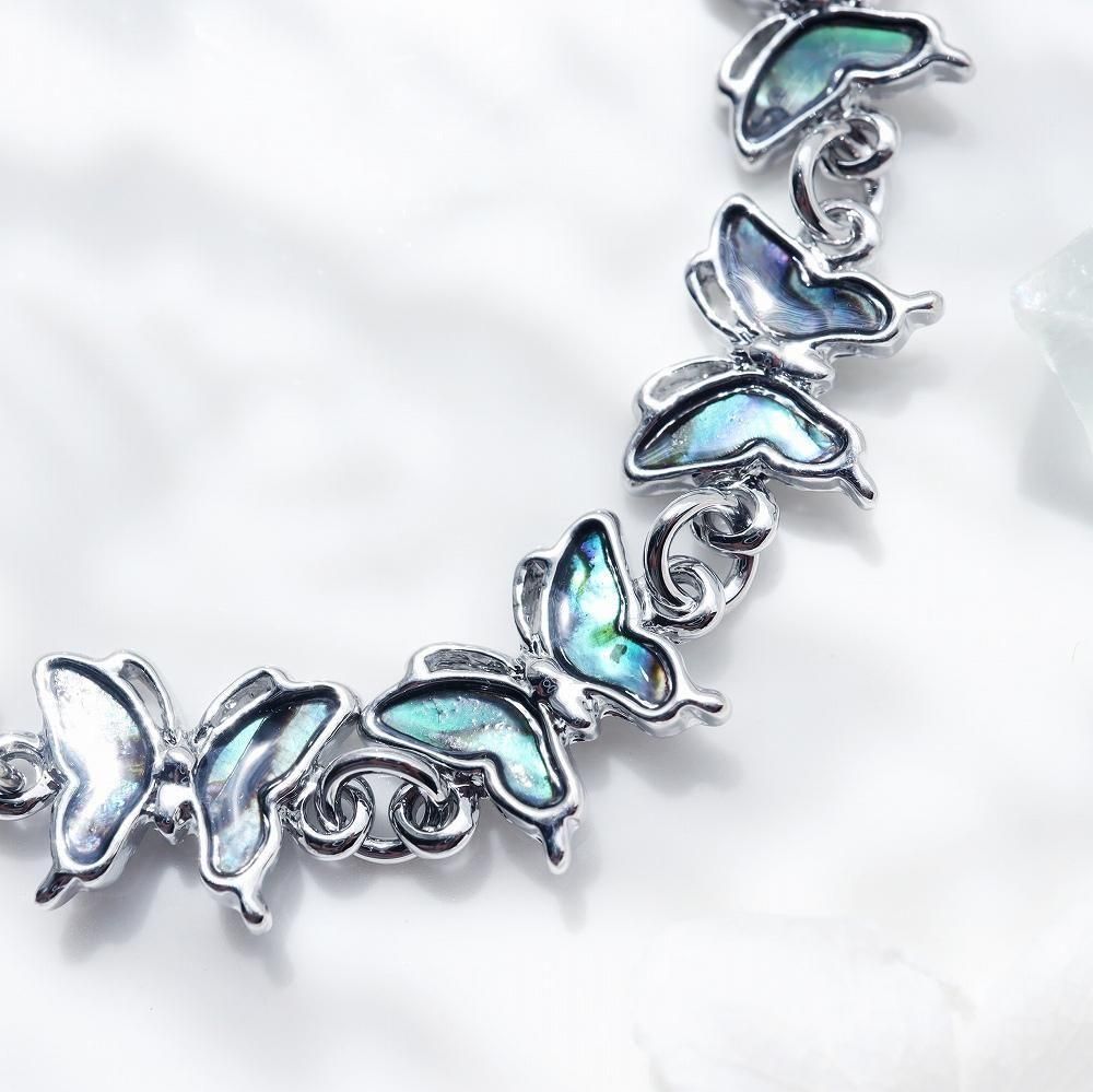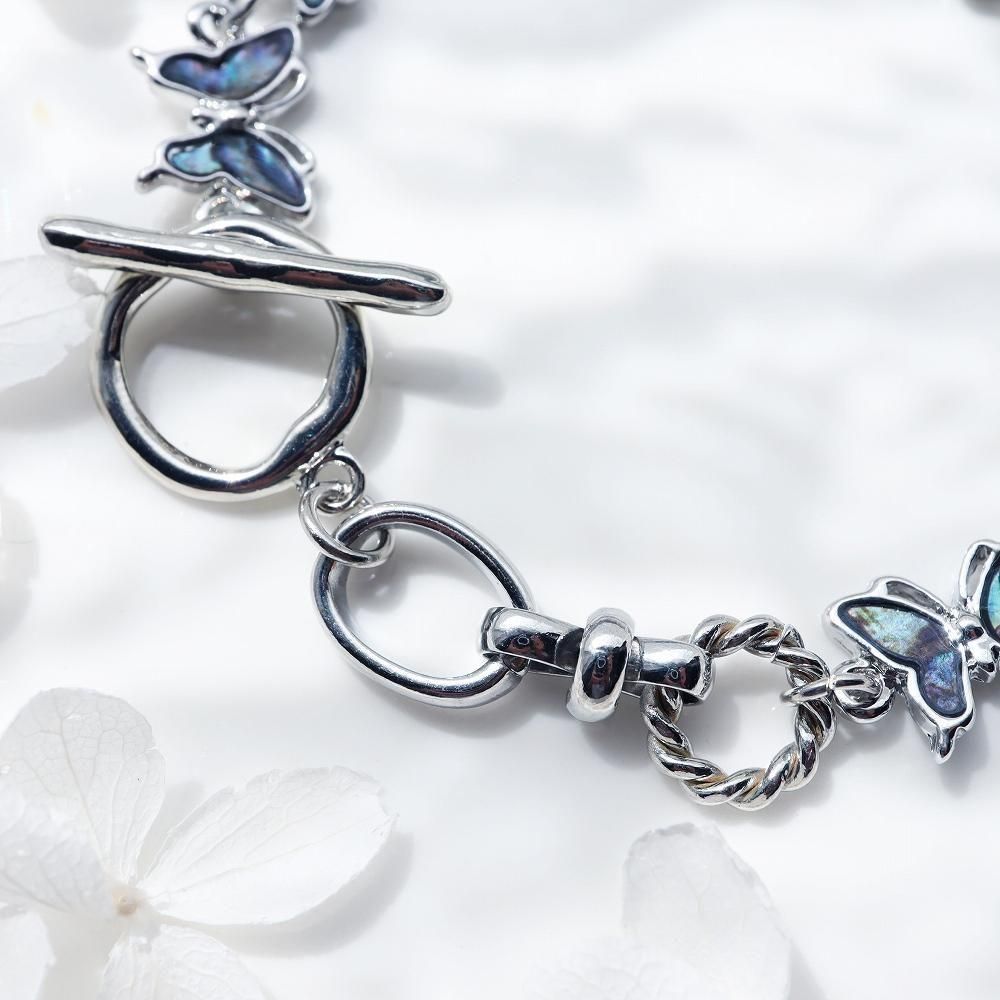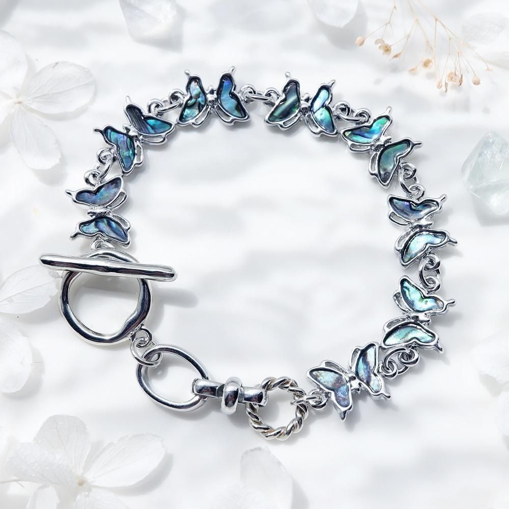 虹色に輝く蝶のアヴァロンシェルブレスレットです。