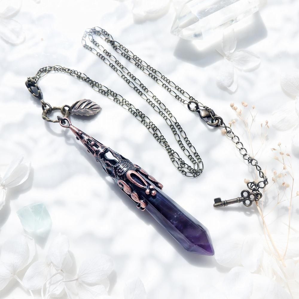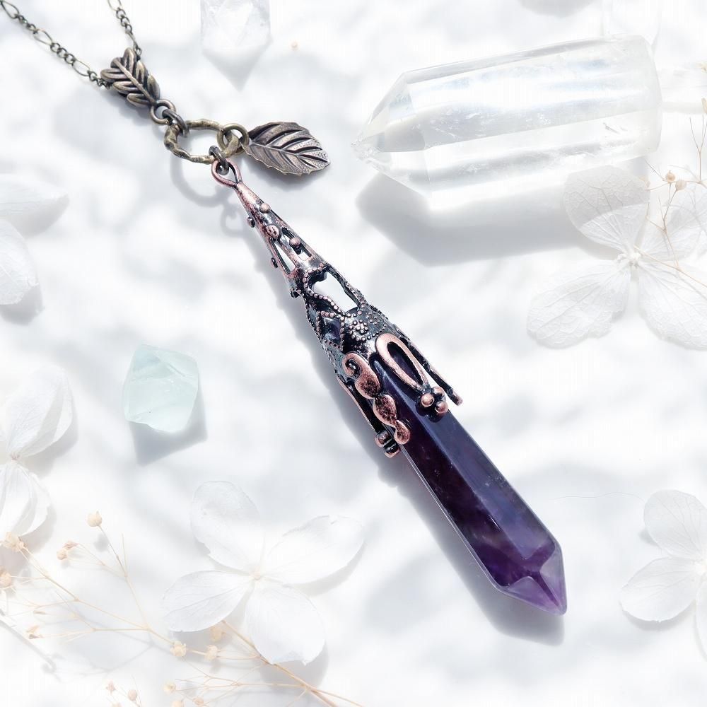葉っぱのチャームとアメジストを使用したネックレスです。
