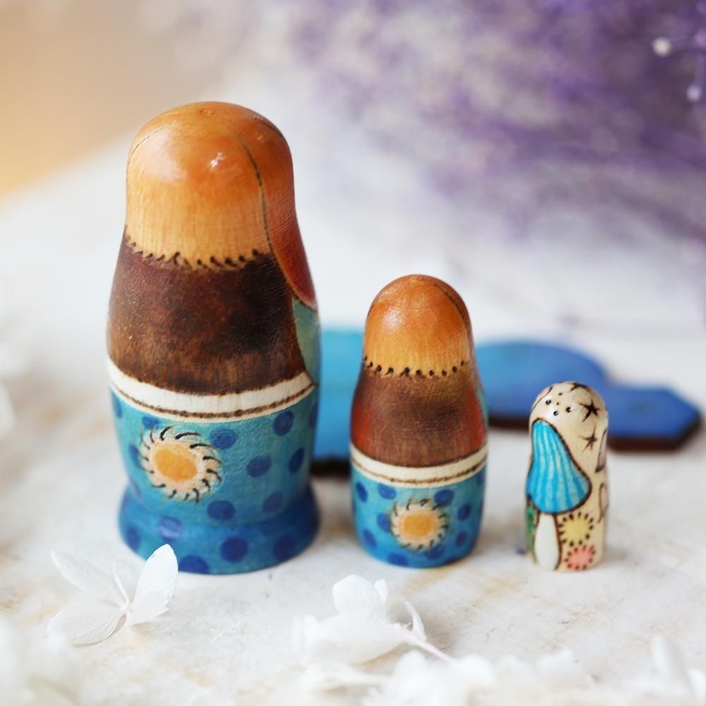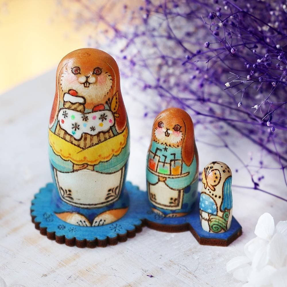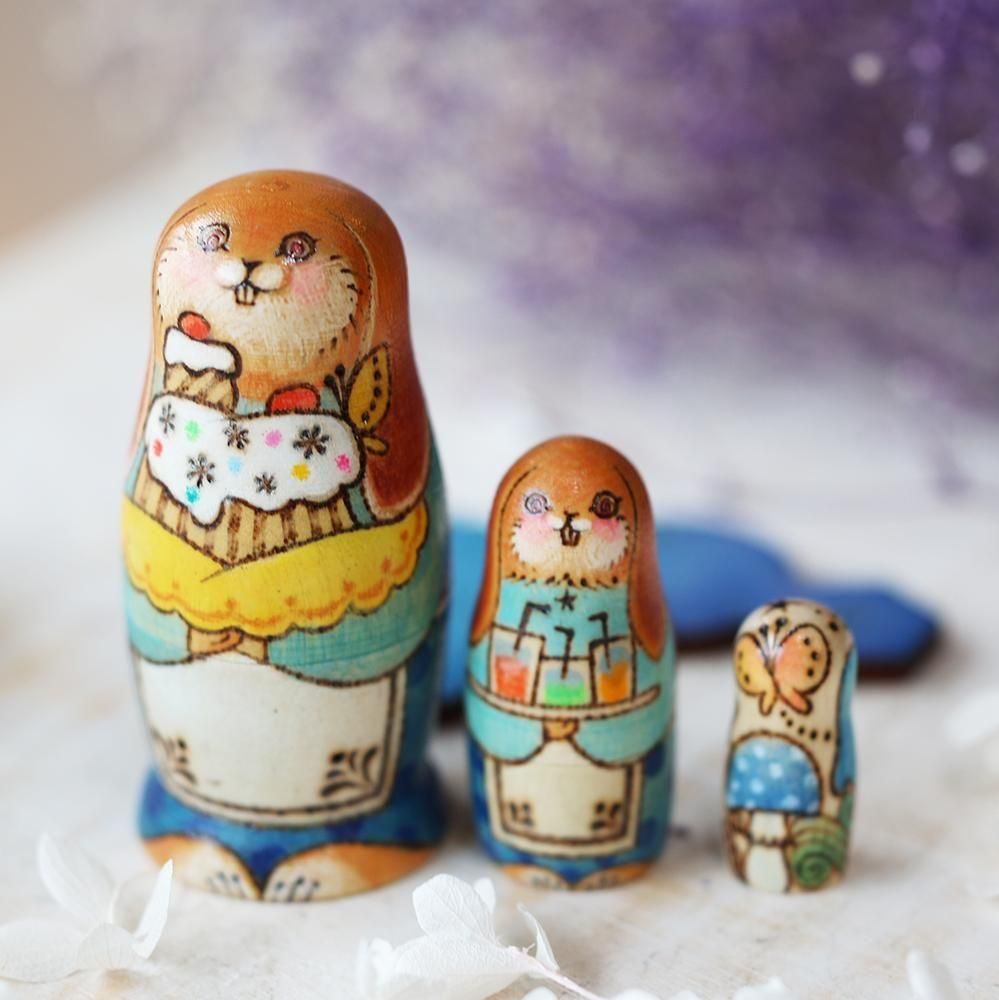 垂れた長い耳が可愛い、小さなマトリョーシカ(三連)です。