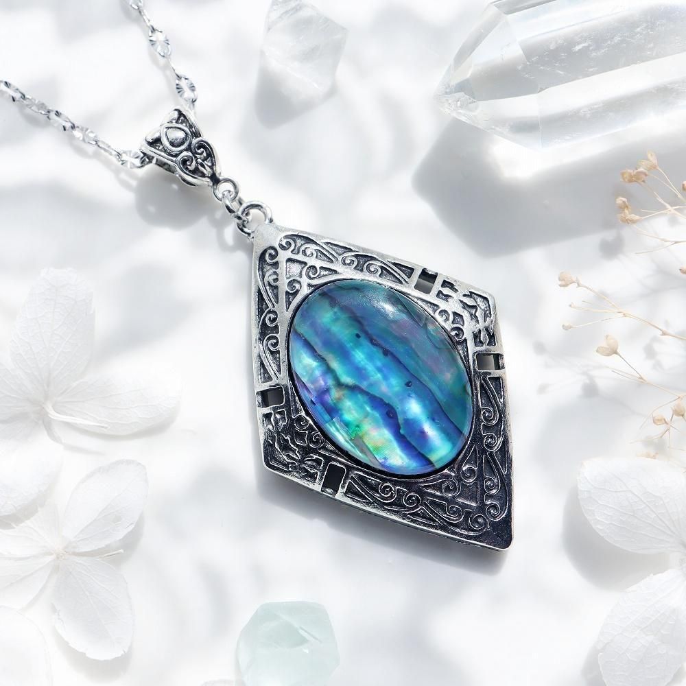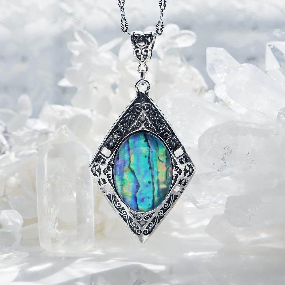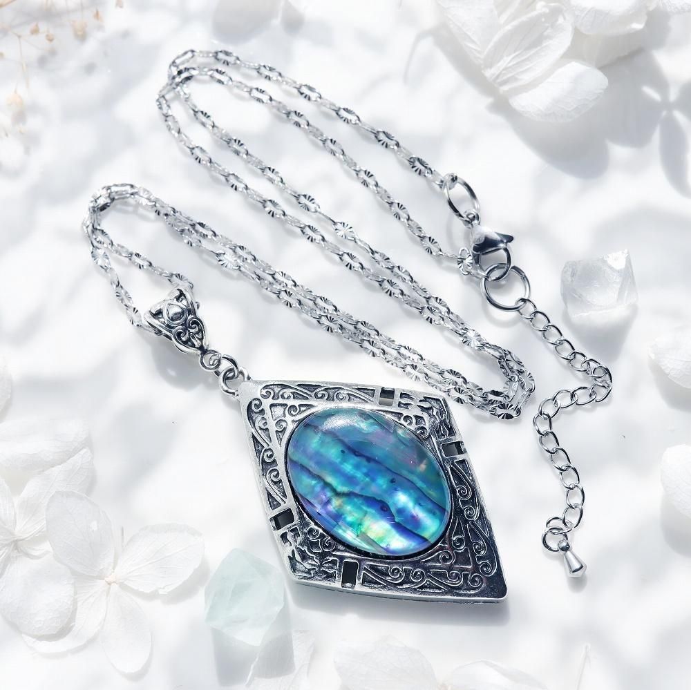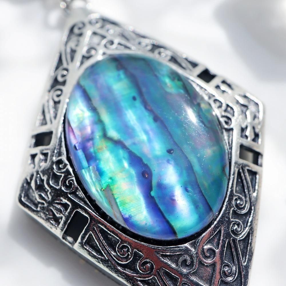 虹色に輝くアヴァロンシェルを使用したネックレスです。