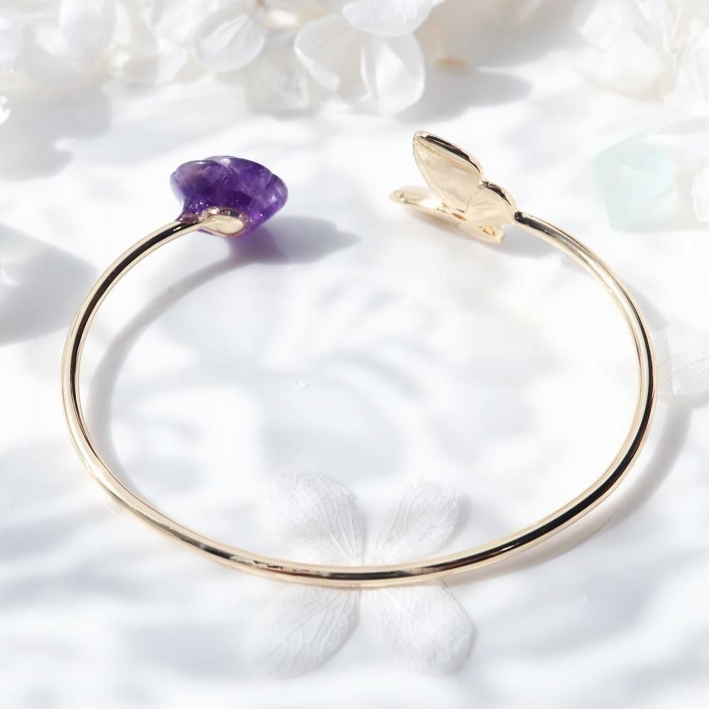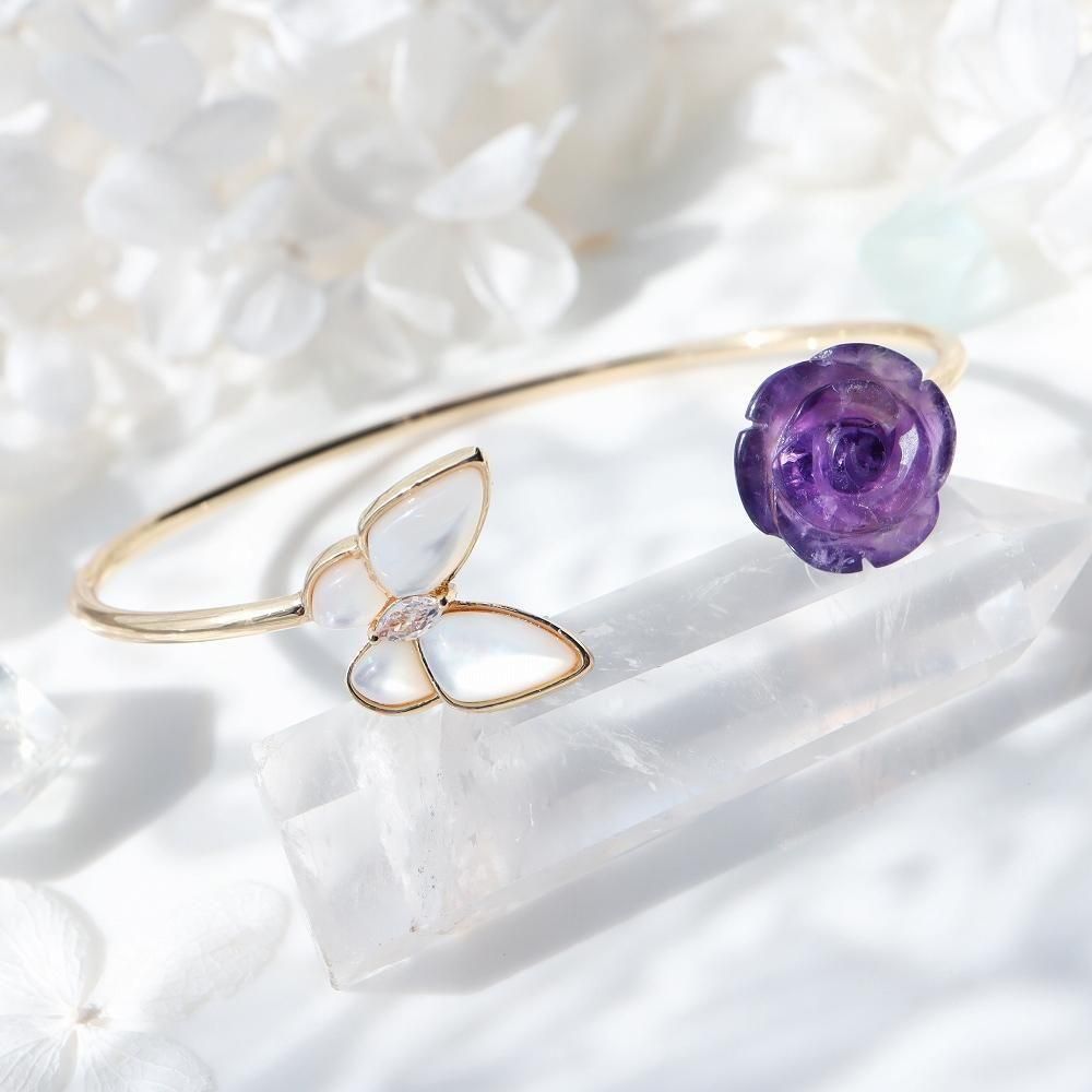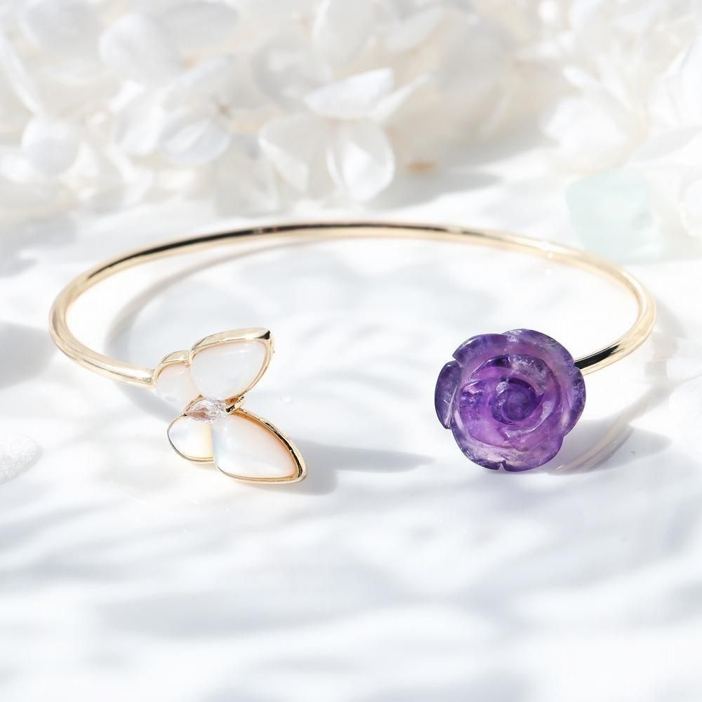 シェルの蝶とアメジストの薔薇のバングルです。