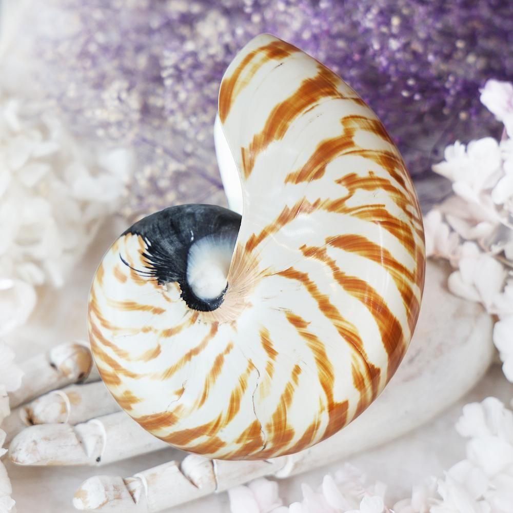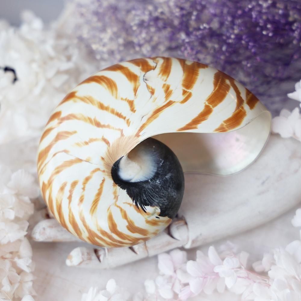 存在感のある、オウムガイの殻です。
